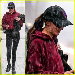 The 36-year-old actress was spotted leaving the gym in the middle of a torrential rain storm on Monday morning (February 16) in Los Angeles.